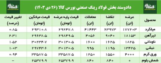 اقتصاد نگار ، مقاطع فولادی در معاملات روز چهارشنبه بورس کالا با افزایش نرخ بیش از یک درصد مواجه شد.