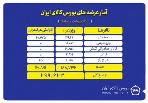 گزارش تحلیلی از عرضه امروز بورس کالای ایران | شنبه ۱۳ اردیبهشت ۱۴۰۴