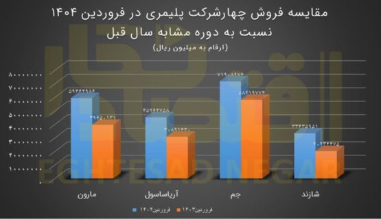چهار شرکت پلیمری مارون ،آریاساسول ،جم و شازند در فروردین ماه امسال نسبت به دوره مشابه سال قبل با رشدهای چشمگیر فروش همراه بودند. شرکت