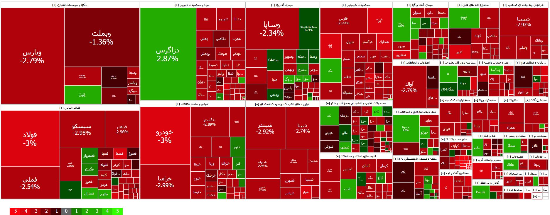 شاخص کل: ۲ میلیون و ۷۵۸ هزار و ۹۱۱ واحد | کاهش ۴۲۰۴۲ واحدی | معادل منفی ۱.۵۰ درصد