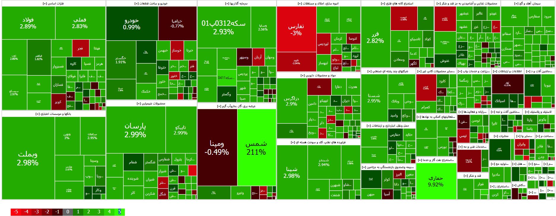 شاخص آزاد شناور: ۳ میلیون و ۵۱۸ هزار و ۴۰۲ واحد | افزایش ۶۹۲۱۱ واحدی | معادل مثبت ۲.۰۱ درصد