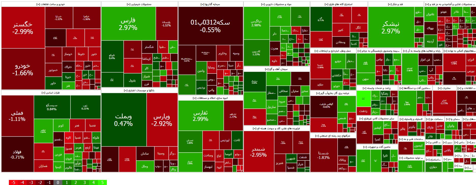 شاخص کل: ۲ میلیون و ۸۰۱ هزار و ۴۳۵ واحد | کاهش ۶۱۷۱ واحدی | معادل منفی ۰.۲۲ درصد