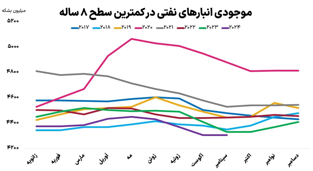 نکته جالب توجه دیگر افت شدید موجودی انبارهای نفت تجاری بود که به کمترین سطح خود از ۲۰۱۷ رسیده بود. این مساله در ظاهر سیگنالی افزایشی برای قیمت نفت محسوب میشود که با توجه به کاهش موجودیها، هر شوکی به عرضه میتواند به سرعت قیمتها را بالا ببرد. مهمترین مانعی که جهش قیمتها در بازار نفت را از این نظر ناکام میگذاشت، علم به این بود که اوپک پلاس حدود ۵ میلیون بشکه در روز ظرفیت خالی افزایش تولید داشت.