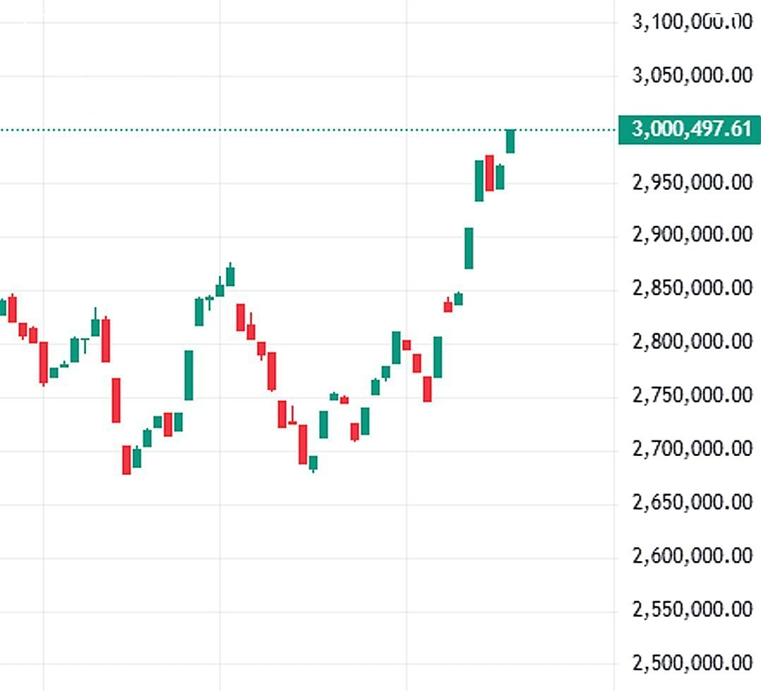 قلهی تاریخی بورس تهران؛ شاخص کل از مرز ۳ میلیون عبور کرد