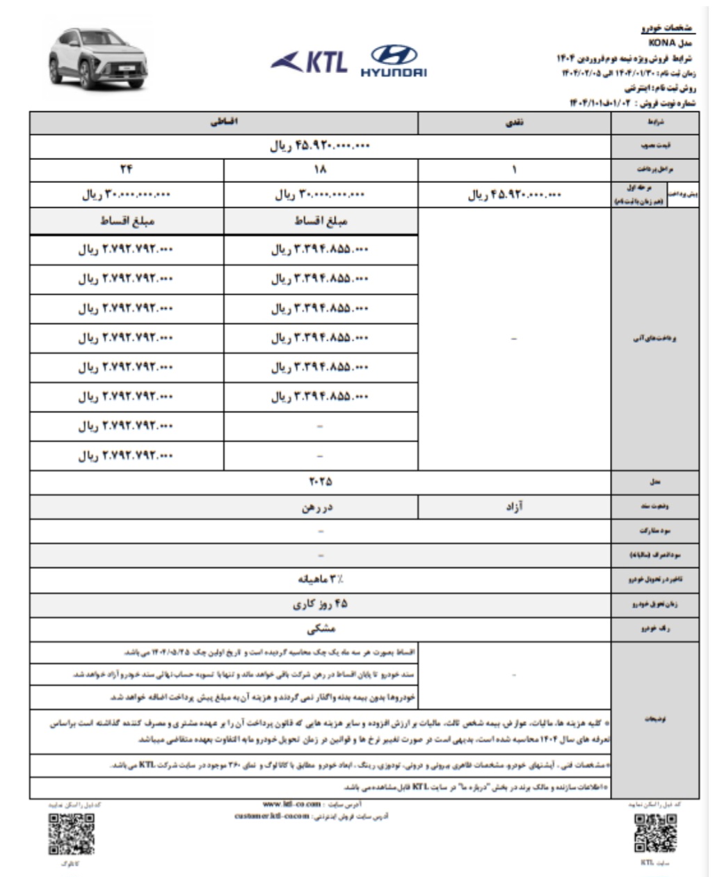 شرکت KTL به عنوان نماینده رسمی هیوندای در ایران، خدمات پس از فروش گستردهای را از طریق شبکه نمایندگیهای خود در سراسر کشور ارایه میدهد. متقاضیان میتوانند برای کسب اطلاعات بیشتر و ثبت نام به سایت شرکت KTL به آدرس https://www.ktl-co.com/ مراجعه کنند.