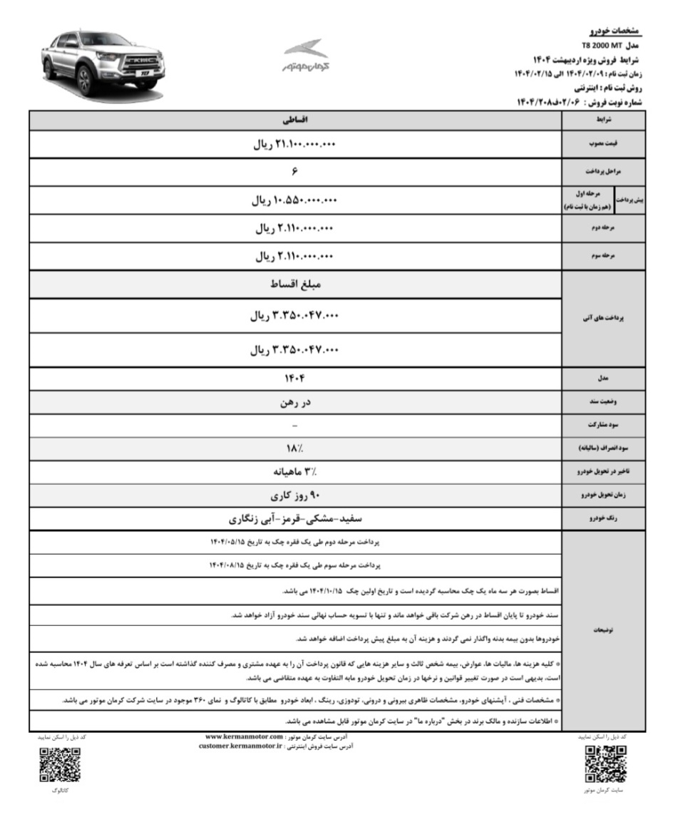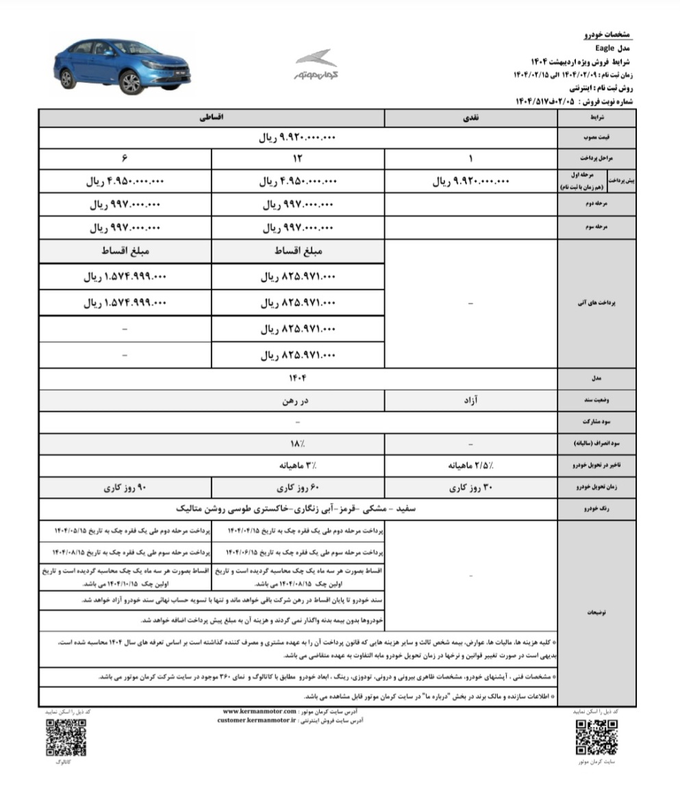 شرایط فروش سه محصولات شرکت کرمان موتور