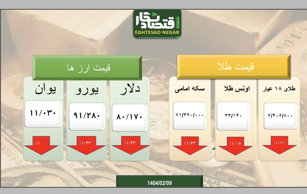 به گزارش اقتصادنگار، طلا، سکه و ارز با توجه به اتفاقات جهانی از جمله تعرفه گذاری ترامپ و مذاکرات ایران و آمریکا همچنان سر به زیر و کاهشی ماندند با توجه به تصمیمات ترامپ، ممکن است در بازار جهانی سال جاری با رویداد های غیر قابل پیش بینی روبرو باشیم. بر اساس آخرین داده های شبکه اطلاع رسانی طلا، سکه و ارز، جدول ذیل تهیه شده که قابل مقایسه اند: