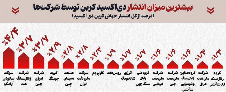 ردهبندی شرکتهای با بیشترین سهم در انتشار CO₂ جهانی (درصد از کل):