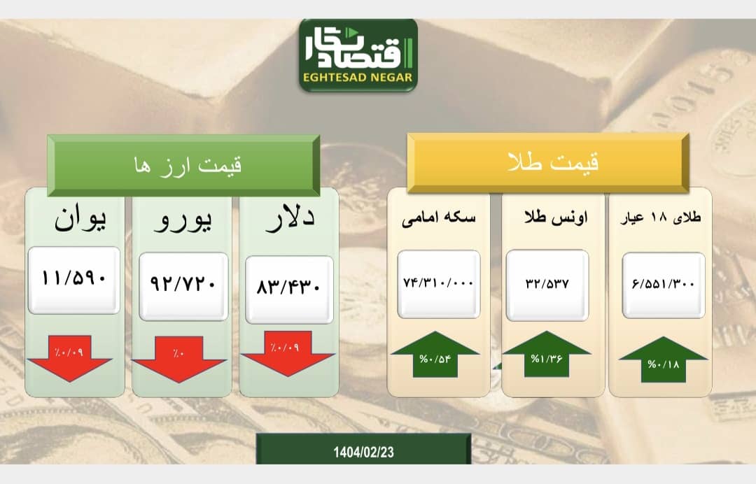 در مبادلات تجاری امروز، در حالی که طلا و سکه افزایش داشتند، بازار ارز با کاهش روبرو شد.