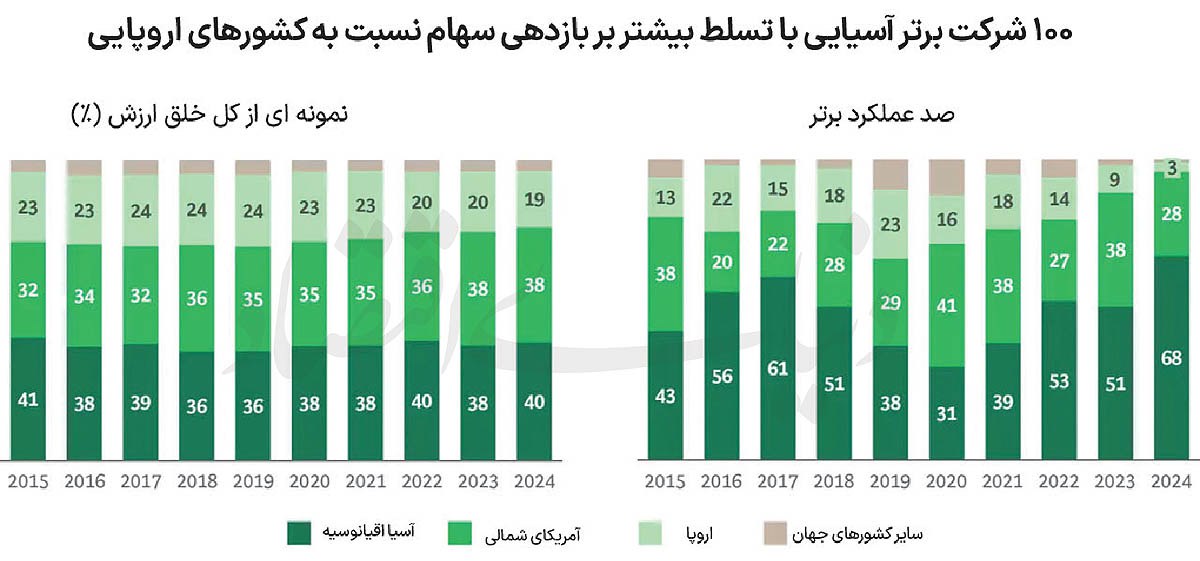 آمریکای شمالی با کسب تنها ۲۸ جایگاه در میان ۱۰۰ شرکت برتر، شاهد افولی محسوس نسبت به سال گذشته بوده است. اروپا نیز با تنها سه شرکت در این فهرست، ضعیفترین عملکرد قارهای را از خود ثبت کرده است. این ارقام بهوضوح نشان میدهد که قاره سبز در رقابت جهانی برای نوآوری و رشد صنعتی، از رقبای آسیایی خود جا مانده است.