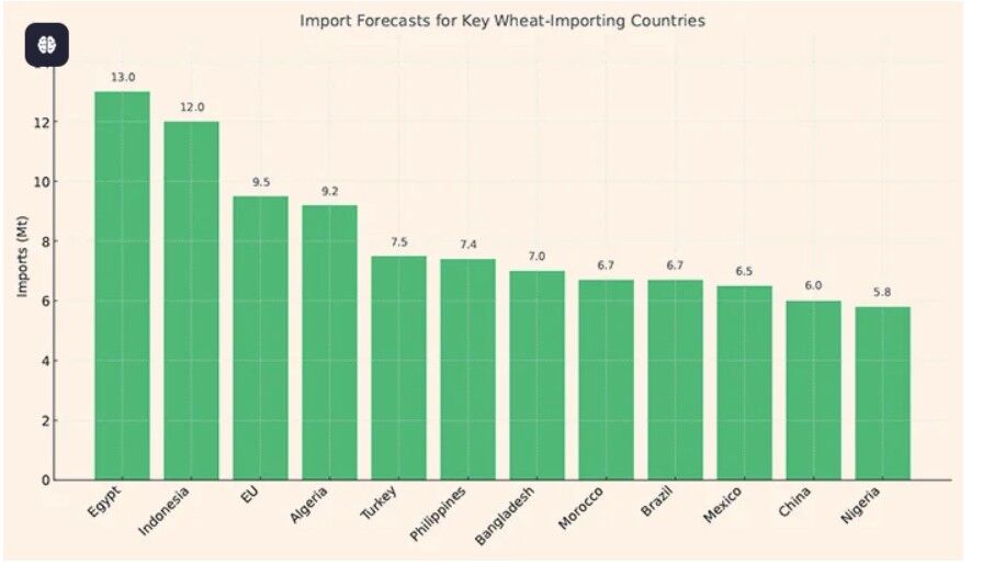 از سوی دیگر، چین با جهشی قابل توجه، واردات گندم خود را تقریباً دو برابر خواهد کرد؛ جهشی که با وجود آنکه هنوز کمتر از سطح دو سال پیش است، اما نشان از افزایش تمرکز این کشور بر امنیت غذایی دارد. در جنوب شرق آسیا، اندونزی و فیلیپین در پاسخ به نیازهای غذایی و خوراک دام، واردکنندگان پررنگتری خواهند شد. پاکستان نیز با کنار گذاشتن برنامه حمایتی قیمت تضمینی، و کاهش سطح زیرکشت، واردات خود را به طور قابل توجهی افزایش میدهد.