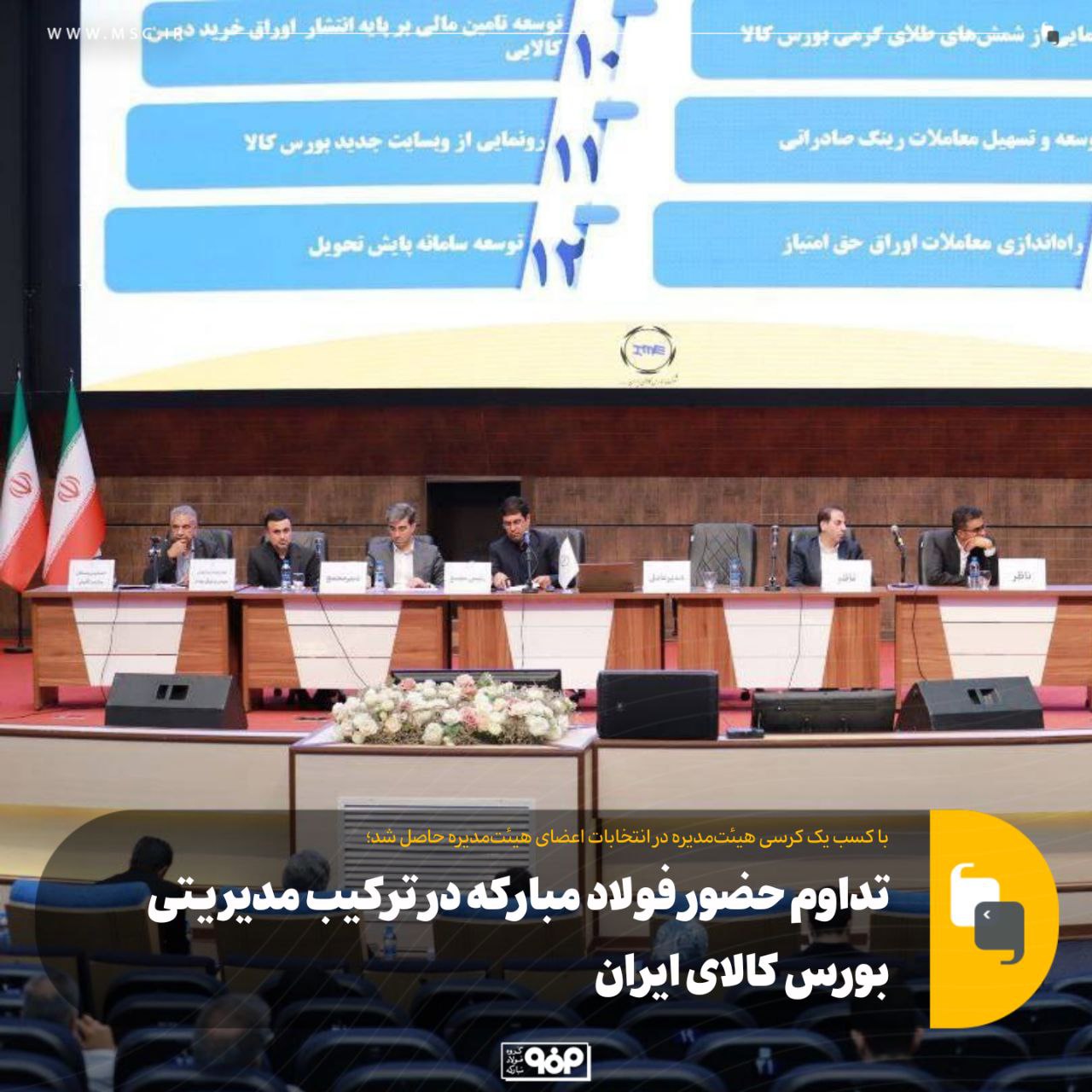 مدیر امور مجامع و راهبری شرکتهای فولاد مبارکه خاطر نشان کرد: این حضور، علاوه بر تثبیت جایگاه فولاد مبارکه در ترکیب مدیریتی بورس کالا، میتواند زمینهساز نقشآفرینی مؤثر در ارتقای شفافیت معاملات و بهبود سیاستگذاریهای مرتبط با بازار محصولات فولادی باشد.