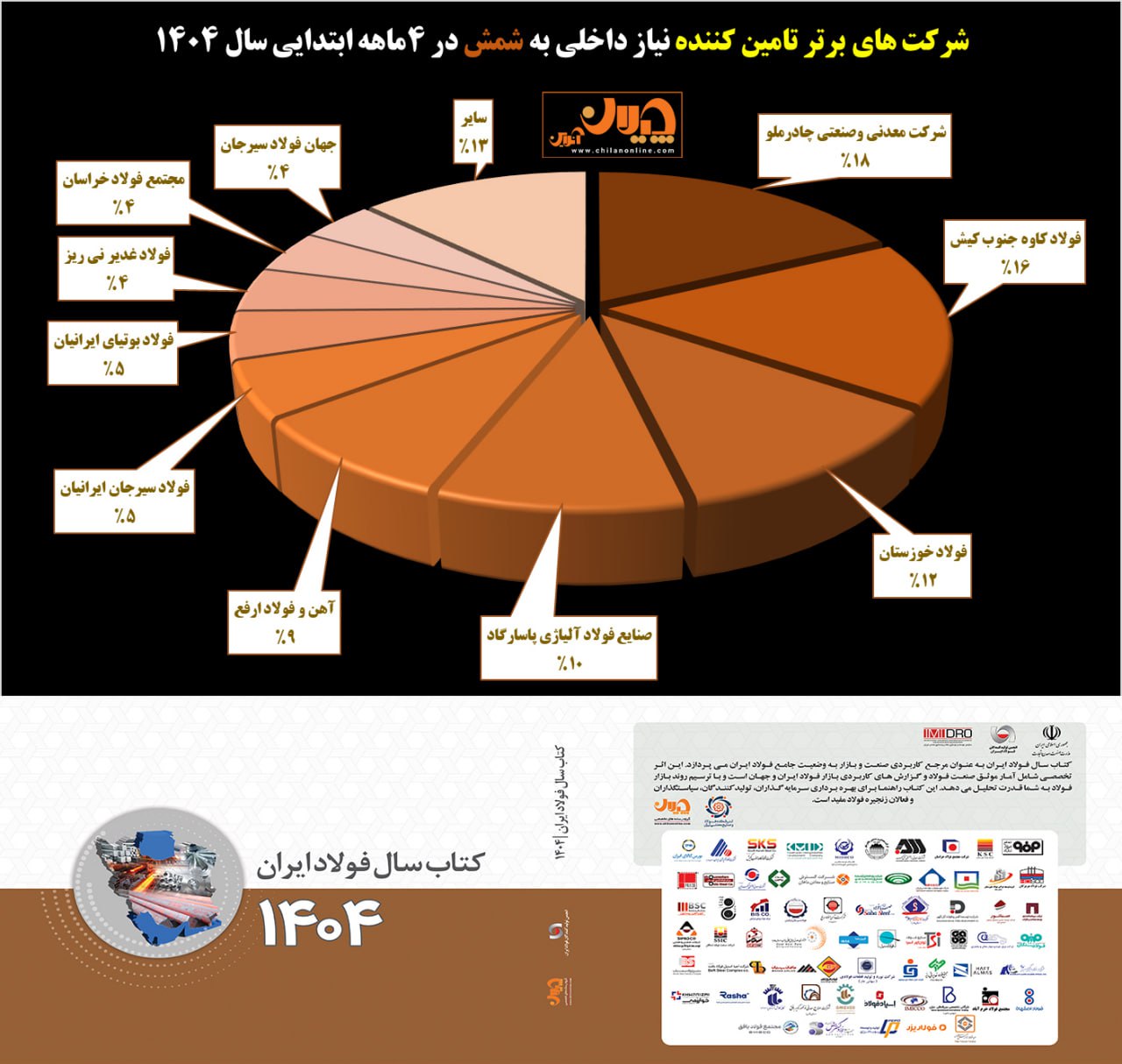 شرکت معدنی و صنعتی چادرملو (کچاد) با سهم ۱۸ درصدی در صدر جدول قرار دارد و بهعنوان بزرگترین تأمینکننده شمش در بازار داخلی در این دوره شناخته میشود. بر مبنای اطلاعات کتاب سال فولاد ایران، در سال ۱۴۰۳ این شرکت رتبه دوم تامین بازار داخلی شمش را داشته است.