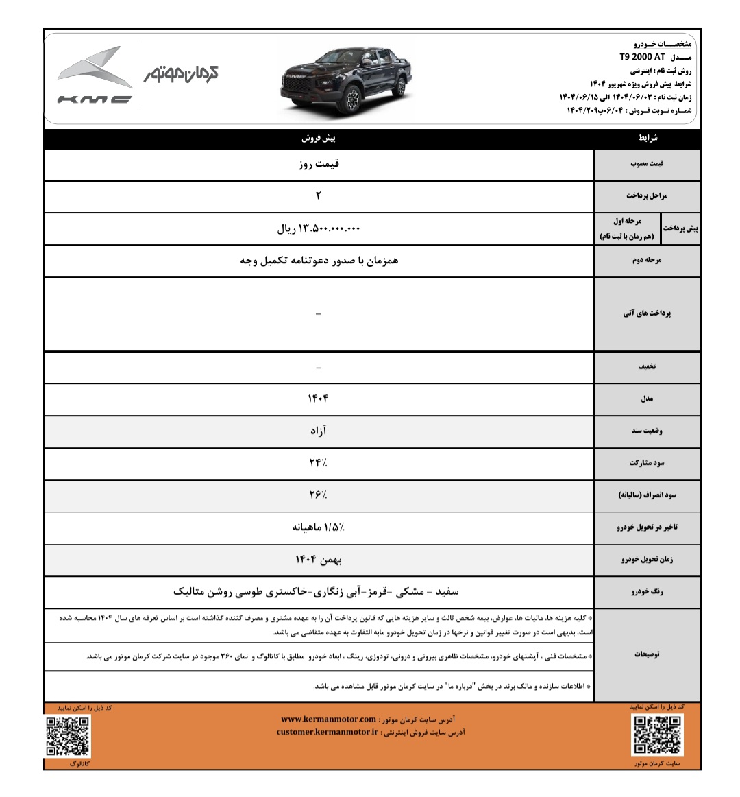 پیشفروش ۴ محصول کرمان موتور از فردا