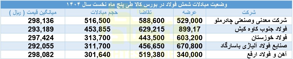 این شرکت همچنین در ۵ ماهه نخست امسال بیشترین حجم عرضه و همچنین تقاضای شمش فولاد در بورس کالا را به نام خود ثبت کرد. میزان عرضه فولاد کاوه معادل ۸۹۹ هزار و ۱۷۵ تن بود که در مقابل ۵۸۸ هزار و ۶۰۰ تن تقاضا دریافت کرد.