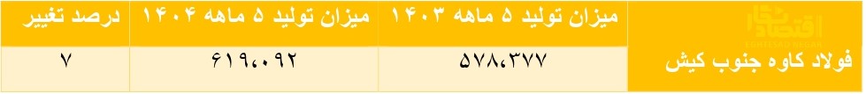 در شرایطی که به دلیل بحران های انرژی صنعت فولاد با مشکلات زیادی دست و پنجه نرم می کند ، شرکت فولاد کاوه جنوب کیش با رشد ۷ درصدی نسبت به سال قبل موفق به ثبت رقم ۶۱۹ هزار و ۹۲ تنی برای ۵ ماهه ابتدای سال ۱۴۰۴ شد.