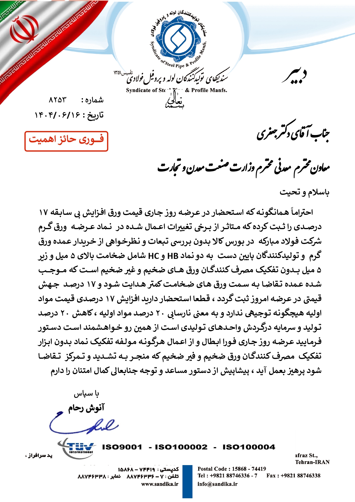 این اعتراض در شرایطی مطرح میشود که صنایع پاییندستی فولاد، از جمله تولیدکنندگان لوله و پروفیل، بخش مهمی از زنجیره تأمین در بازار داخلی محسوب میشوند و تغییرات ناگهانی در قیمت مواد اولیه میتواند بر ثبات تولید و اشتغال این بخش تأثیرگذار باشد.