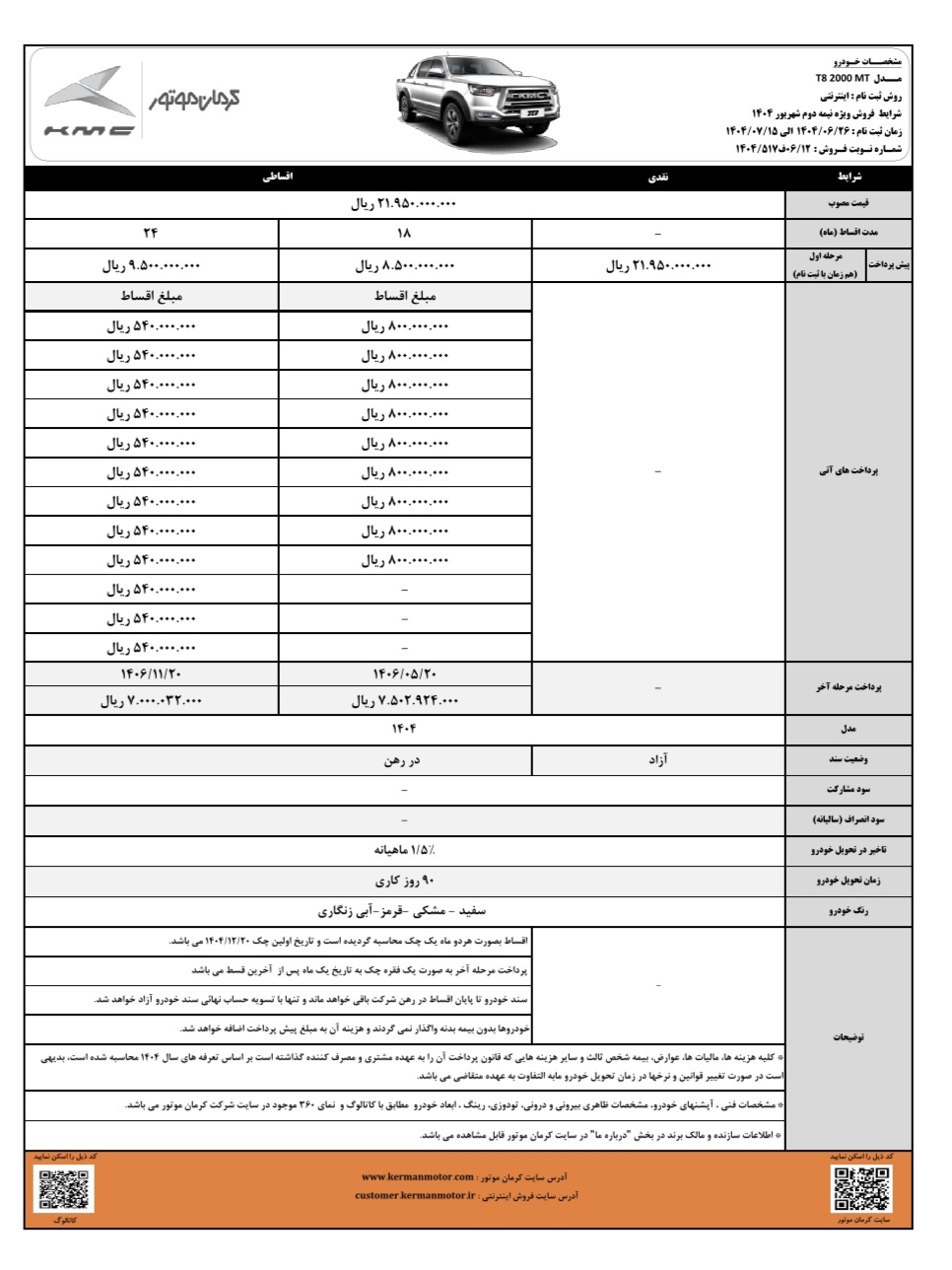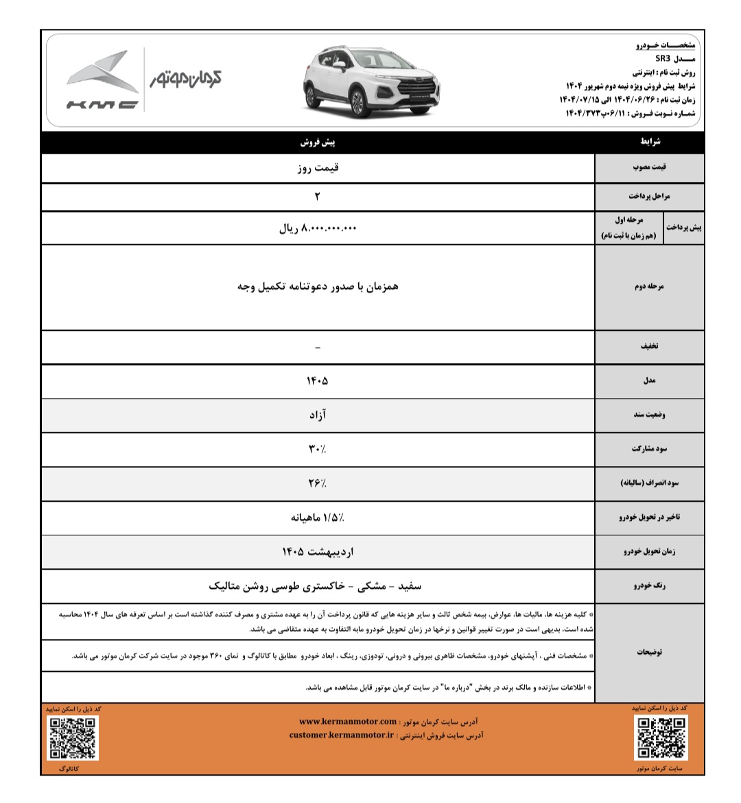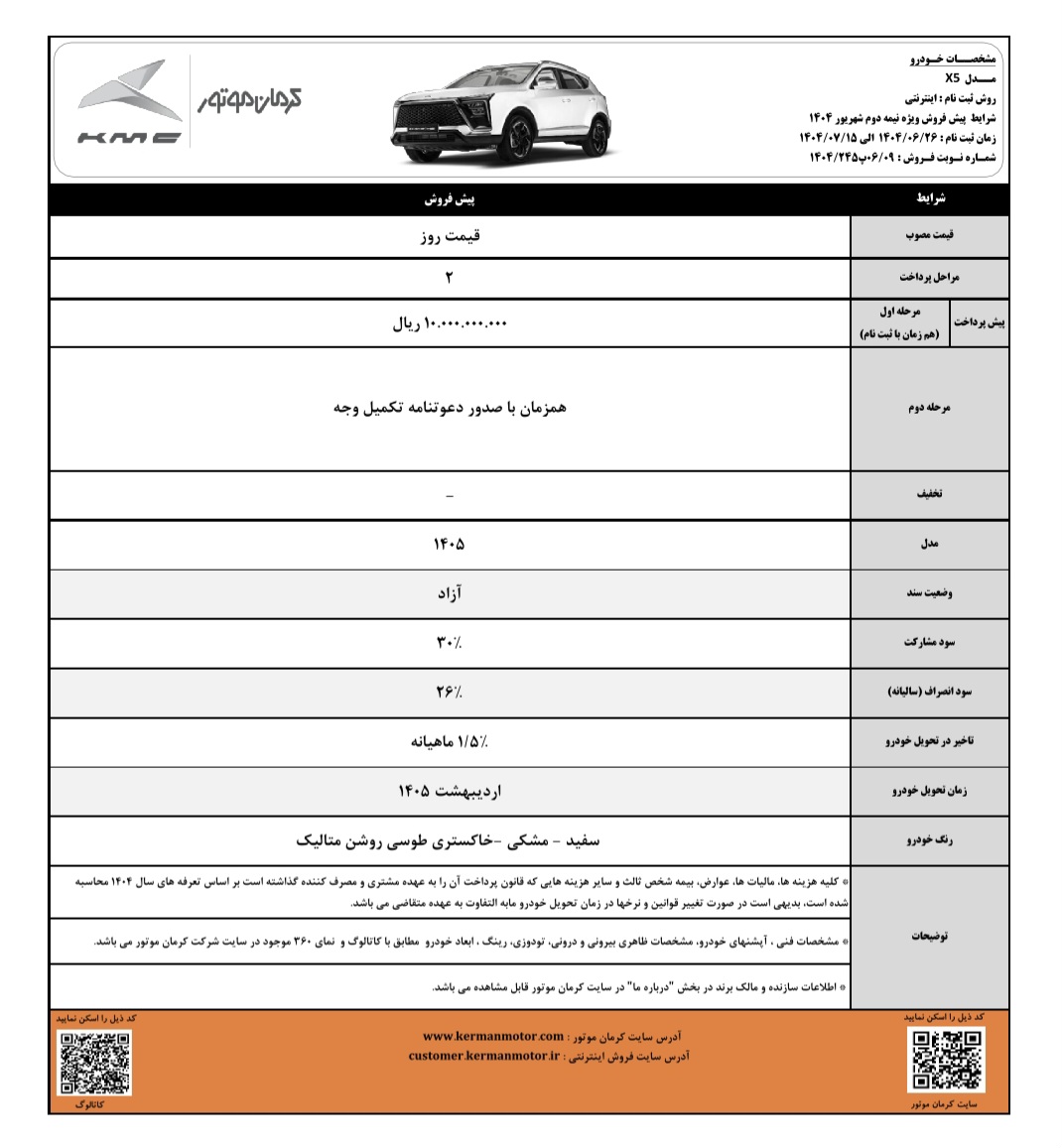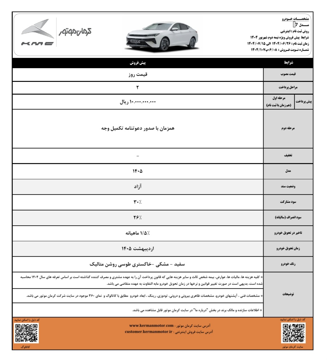 آغاز طرح فروش ۵ محصول کرمان موتور ویژه شهریور و مهر ۱۴۰۴