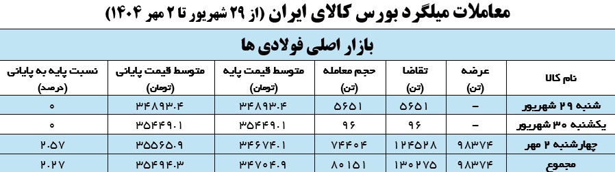 دادوستدهای میلگرد در هفته سپری شده با رقابت ۲ درصدی همراه شد و این در حالی بود که هر کیلو میلگرد ۳۵.۴ هزار تومان فروخته شد.