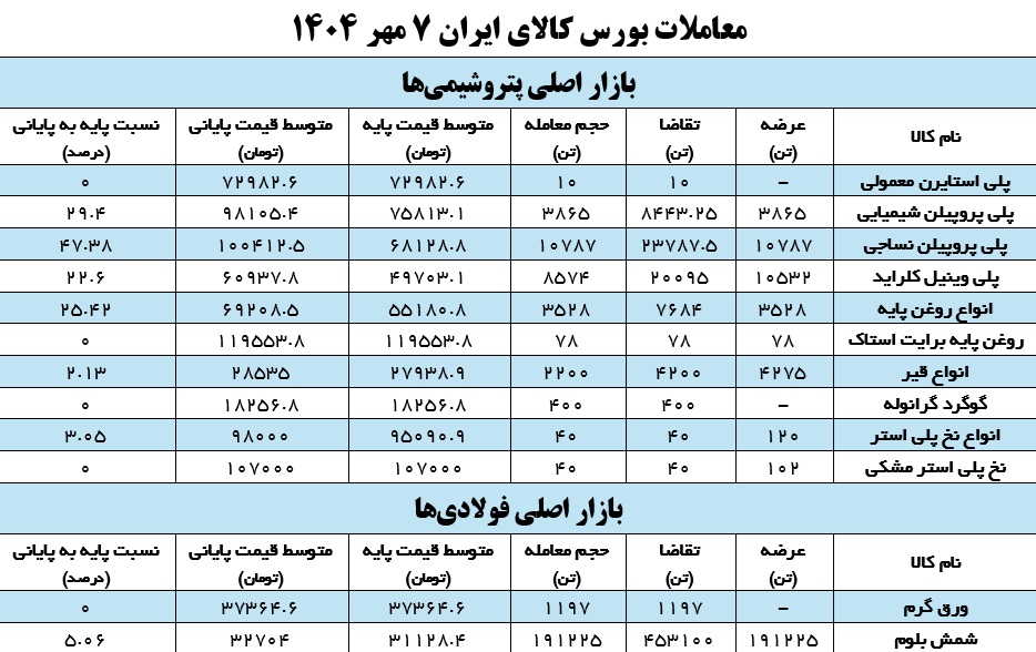 به گزارش « اقتصاد نگار »، دادوستدهای روز دوشنبه ۷ مهر در شرایطی دنبال شد که در بازار پتروشیمیها انواع پلی پروپیلن عرضه شد و درصد رقابت برای پلی پروپیلن نساجی بیش از ۴۷ درصد بود. در این میان انواع روغن پایه نیز با رقابت ۲۵ درصدی مواجه شدند.