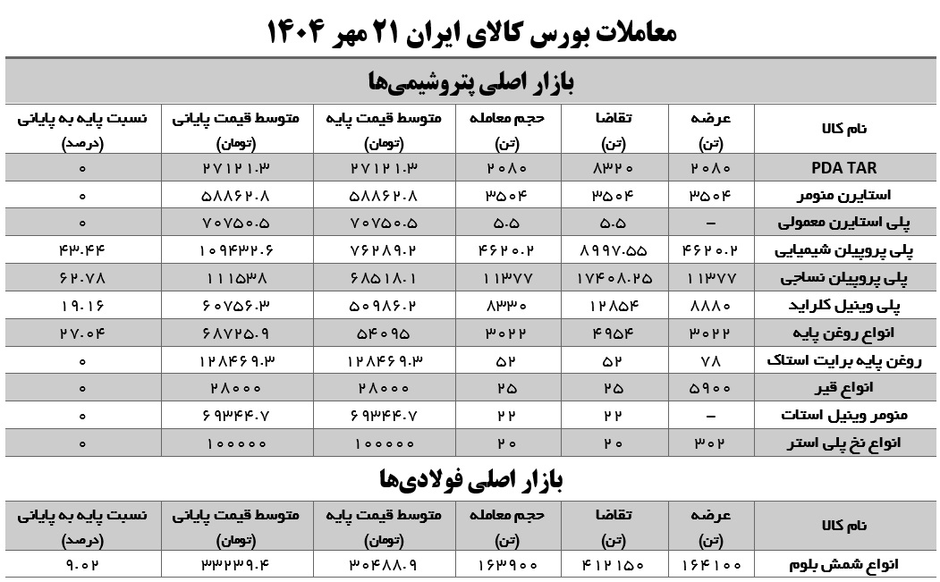 در بازار صنعتی در معاملات روز دوشنبه هر کیلو شمش بلوم به طور متوسط ۳۳.۲ هزار تومان معامله شد که با رقابت ۹ درصدی همراه شد. روند قیمتها در هفته جاری نسبت به مدت مشابه هفته قبل (۱۴ مهر) با کاهش ۰.۱۹ درصدی همراه شد. این در حالی است که دامنه تغییر متوسط قیمتها در دادوستدها ۳۰.۹ هزار تومان تا ۳۴.۸ هزار تومان بود. با این وصف به نظر میرسد در دادوستدها یک نکته مهم عدم تغییر قیمت پایه در هفته جاری نسبت به هفته گذشته بود. بیشترین محصول فروخته شده نیز برای فولاد کاوه جنوبی کیش؛ ۳۵ هزار تن، فولاد خوزستان؛ ۳۰ هزار تن، صنعتی و معدنی چادرملو؛ ۲۰ هزار تن و جهان فولاد سیرجان؛ ۱۲ هزار تن بود. نسبت تقاضا به عرضه برای شمش بلوم ۲.۵ برابر بود.