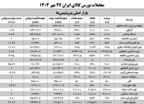 به گزارش « اقتصاد نگار »، در دادوستدهای روز یکشنبه ۲۷ مهر در بازار پتروشیمی دنبال شد. در بازار فولادیها معاملهای شکل نگرفت. بیشترین رقابت برای پلی وینیل کلراید و بیشترین رقابت منفی برای کود مایع ازته به میزان ۸۹ درصد رقابت منفی مواجه بود.