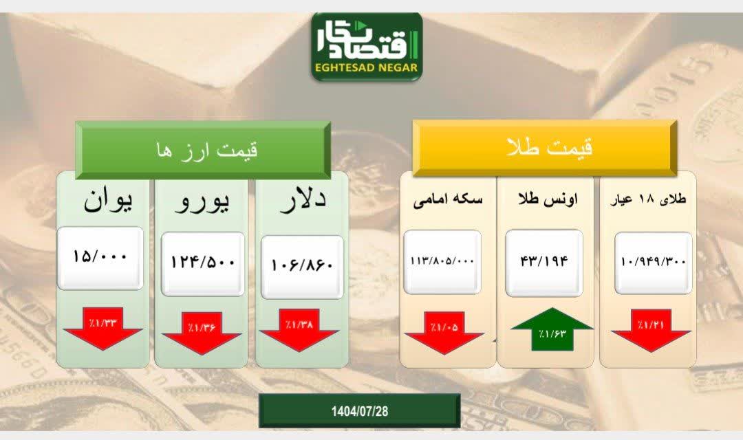 به گزارش اقتصادنگار، هر چند انس جهانی طلا روند افزایشی خود را ادامه می دهد، بازار طلا، سکه و ارز در کشورمان به دلیل تردیدهایی که سیاست های جهانی در مبادلات تجاری مثل تعرفه گذاری ترامپ، تنش های تجاری آمریکا و مذاکرات غیر مستقیم ایران و آمریکا، ایجاد کرده است در مسیر نزولی قرار دارد؛ روند تغییرات طلا و ارز در جدول ذیل به نمایش در آمده است: