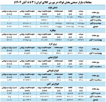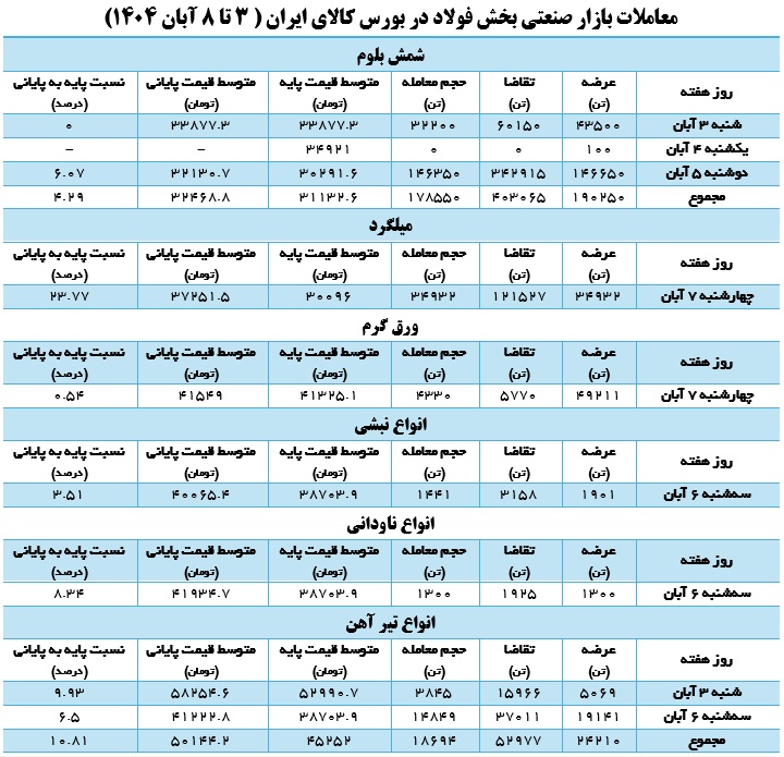 معاملات بازار صنعتی بخش فولاد در بورس کالای ایران ( ۳ تا ۸ آبان ۱۴۰۴) |