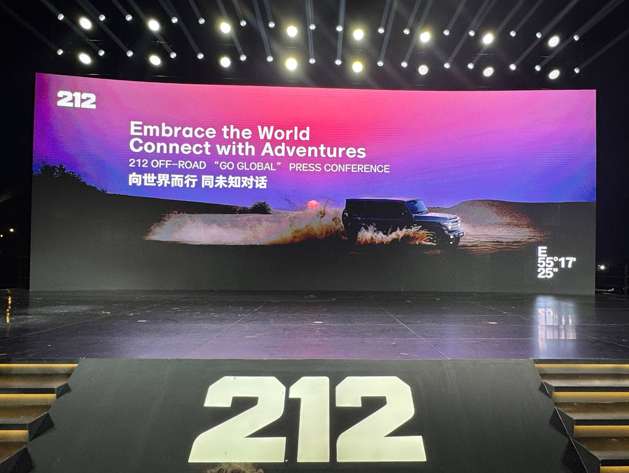 در این همایش جهانی، مدیر عامل برند ۲۱۲ اظهار کرد: شرکت ما در قلب دوبی واقع شده و این موقعیت استراتژیک، ما را به یکی از بازیگران کلیدی صنعت خودرو در سراسر امارات تبدیل کرده است. آنچه که از اقدامات برند ۲۱۲ می توان برداشت کرد الگوبرداری استراتژیک از لندروور و جیپ برای توسعه سبد محصولات هست، سبدی متشکل از خودروهای شاسی مستقل با قابلیت آفرودی بالا در تیپهای ۵ در، ۳ در و پیکاپ دوکابین استکه مبین رویکردی جهانی برای تامین خواسته بازارهای هدف برای استفاده از محصولی رقابتی است.