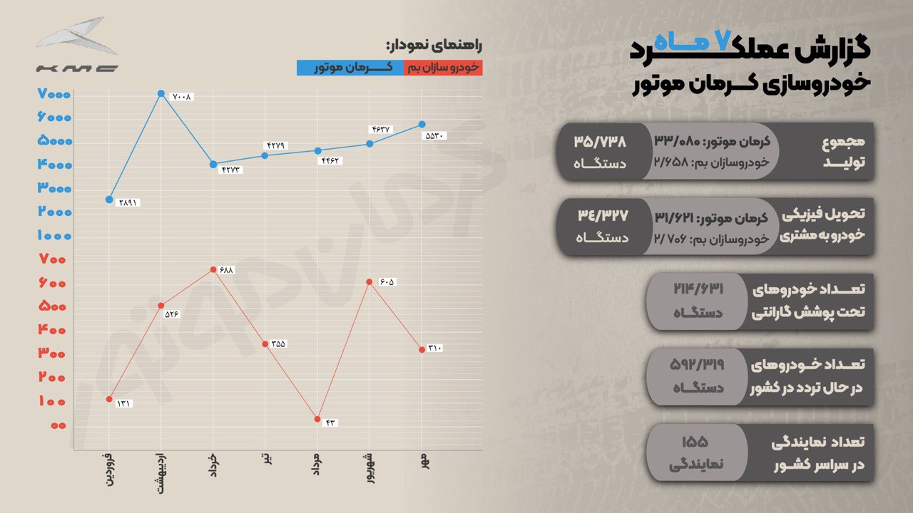 بر اساس آمار منتشر شده از سوی وزارت صمت، تولید کرمان موتور در هفت ماهه نخست سال جاری از مرز ۳۵ هزار دستگاه عبور کرده است.