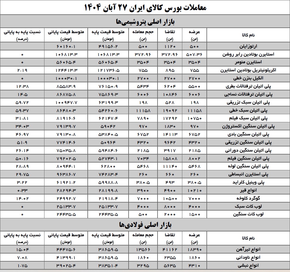 معاملات بورس کالای ایران ۲۷ آبان ۱۴۰۴ |