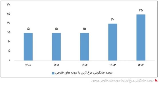 در این گزارش آمده است، وزارت جهاد کشاورزی از سال ۱۳۹۸ تصمیم گرفت روی خودکفایی نژاد مرغ متمرکز شود. ولی نژادی که برای این هدف به مرغداران معرفی شد، نژادی با بهرهوری پایین و قدرت رقابت کم به لحاظ وزنگیری و کیفیت با سایر نژادهاست. امروز نژاد آرین مورد حمایت دولت است.