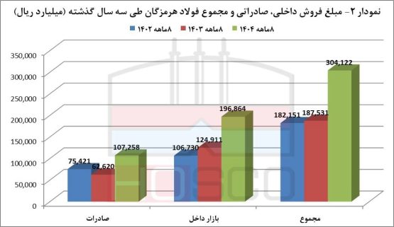 بر اساس این گزارش، مجموع درآمد فولاد هرمزگان از محل فروش داخلی و صادراتی تختال در هشتماهه امسال به ۳۰۴ هزار و ۱۱۸ میلیارد ریال رسیده که در مقایسه با ۱۸۷ هزار و ۵۳۱ میلیارد ریال مدت مشابه سال قبل، رشد ۶۲درصدی را به ثبت رسانده و چشمانداز مثبتی از عملکرد این شرکت در ادامه سال ۱۴۰۴ ترسیم میکند.