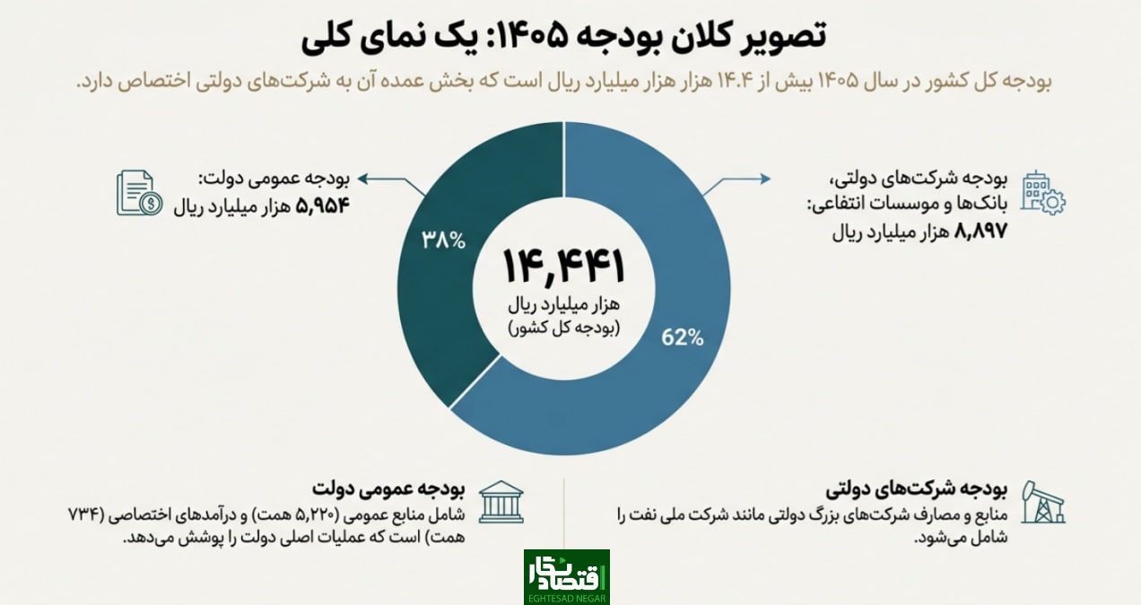 ۶۲ درصد بودجه کشور برای بودجه شرکتهای دولتی، بانکها و موسسات غیرانتفاعی است (معادل ۸۸۹۷ هزار میلیارد ریال).
