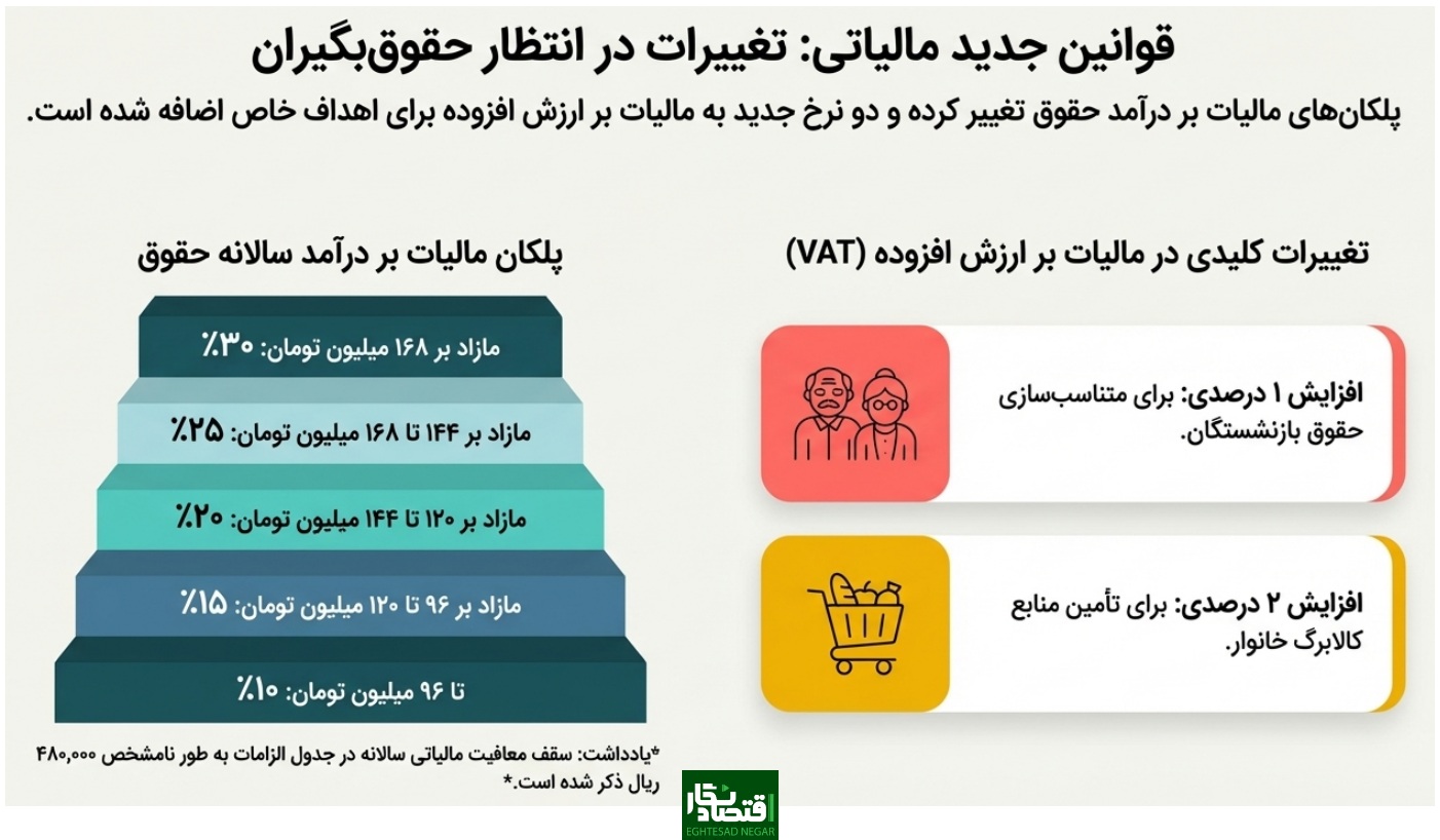 پلکانهای مالیات بر درآمد حقوق تغییر کرده و دو نرخ جدید به مالیات بر ارزش افزوده برای اهداف خاص اضافه شده است.