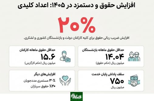 افزایش ضریب ریالی حقوق برای همه کارکنان دولت و بازنشستگان کشوری و لشکری ۲۰ درصد است.