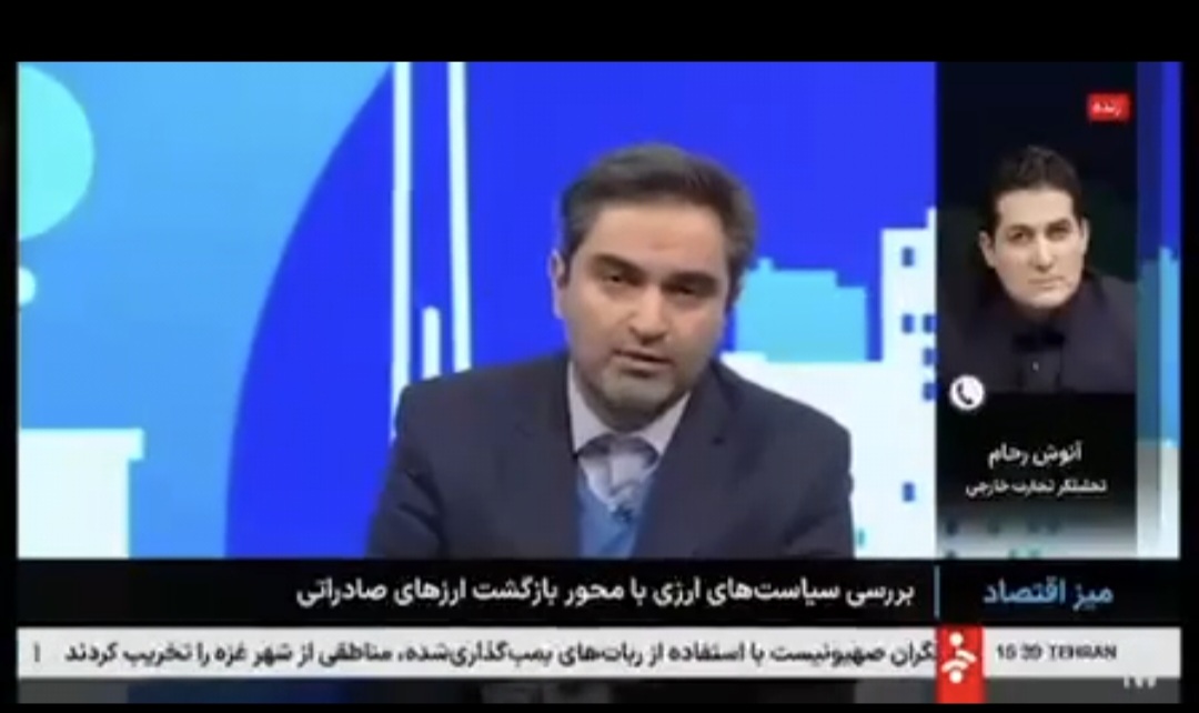 امروز در برنامه میز اقتصاد - شبکه خبر با حضور قناد زاده معاون سازمان توسعه تجارت و ملکان عضو کمیسیون اقتصادی مجلس شورای اسلامی و آنوش رحام دبیر سندیکای تولیدکنندگان لوله و پروفیل فولادی سیاست های ارزی با محوریت بازگشت ارزهای صادراتی مورد بحث و بررسی قرار گرفت .